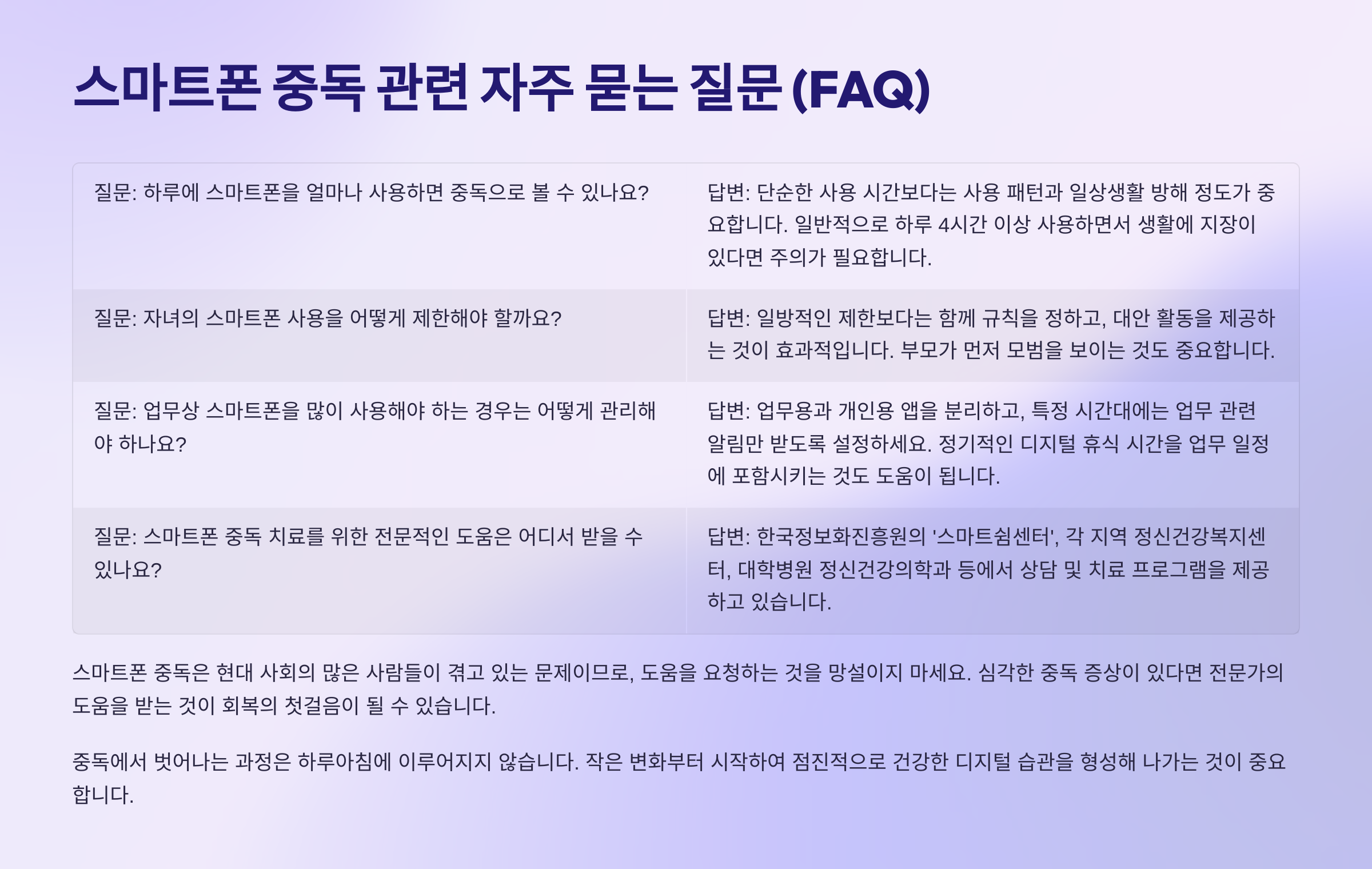 ❓ 스마트폰 중독 관련 자주 묻는 질문 (FAQ)