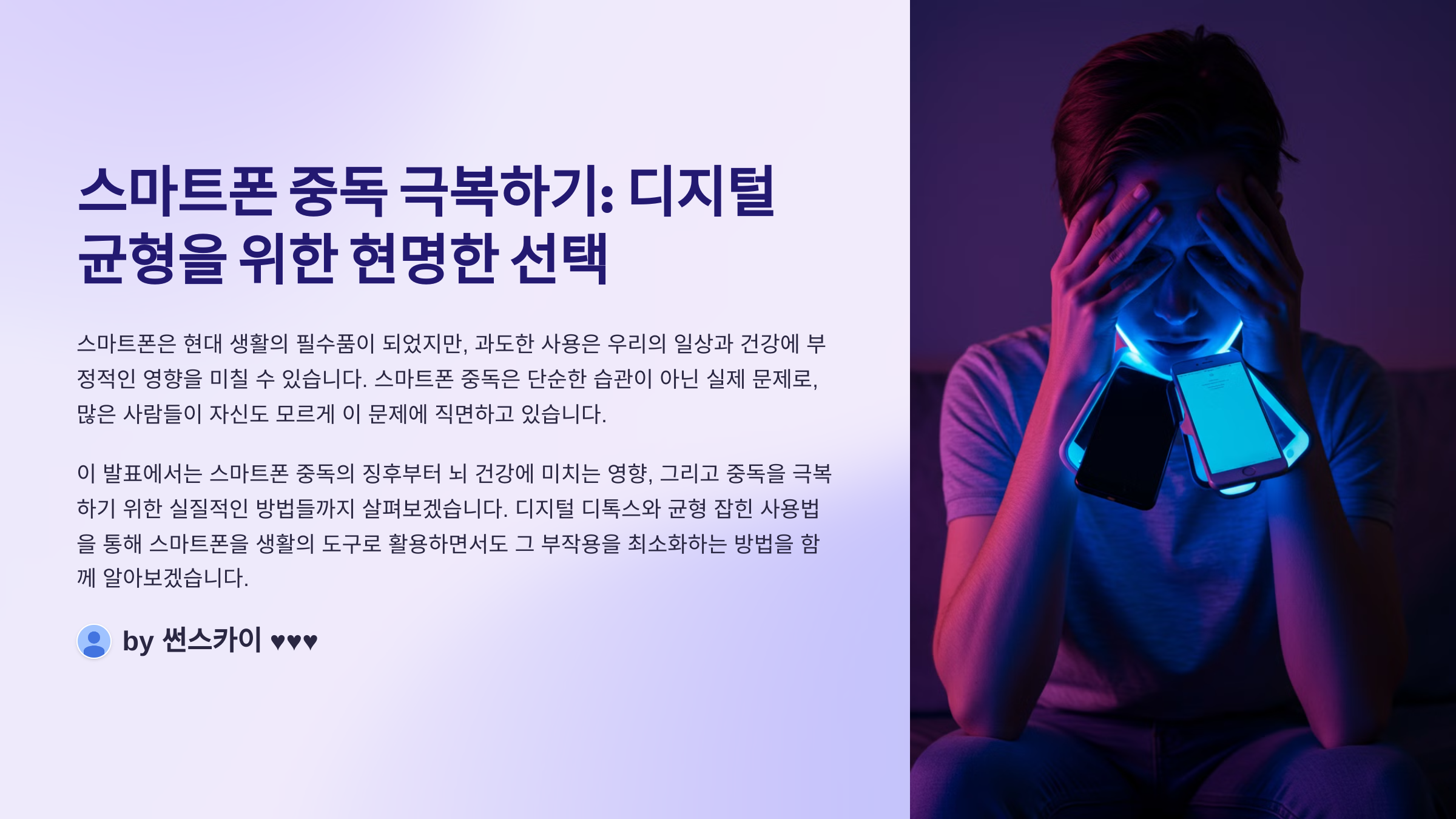 눈 뜨자마자 스마트폰 확인하고, 잠들기 직전까지 SNS에 빠져 있진 않으세요? 📱 스마트폰은 이제 생활의 일부지만, 어느 순간 '중독'이 되어버렸다는 걸 깨닫는 순간이 오죠. 그냥 습관이려니 넘기다간 뇌와 정신 건강까지 영향을 줄 수 있어요.