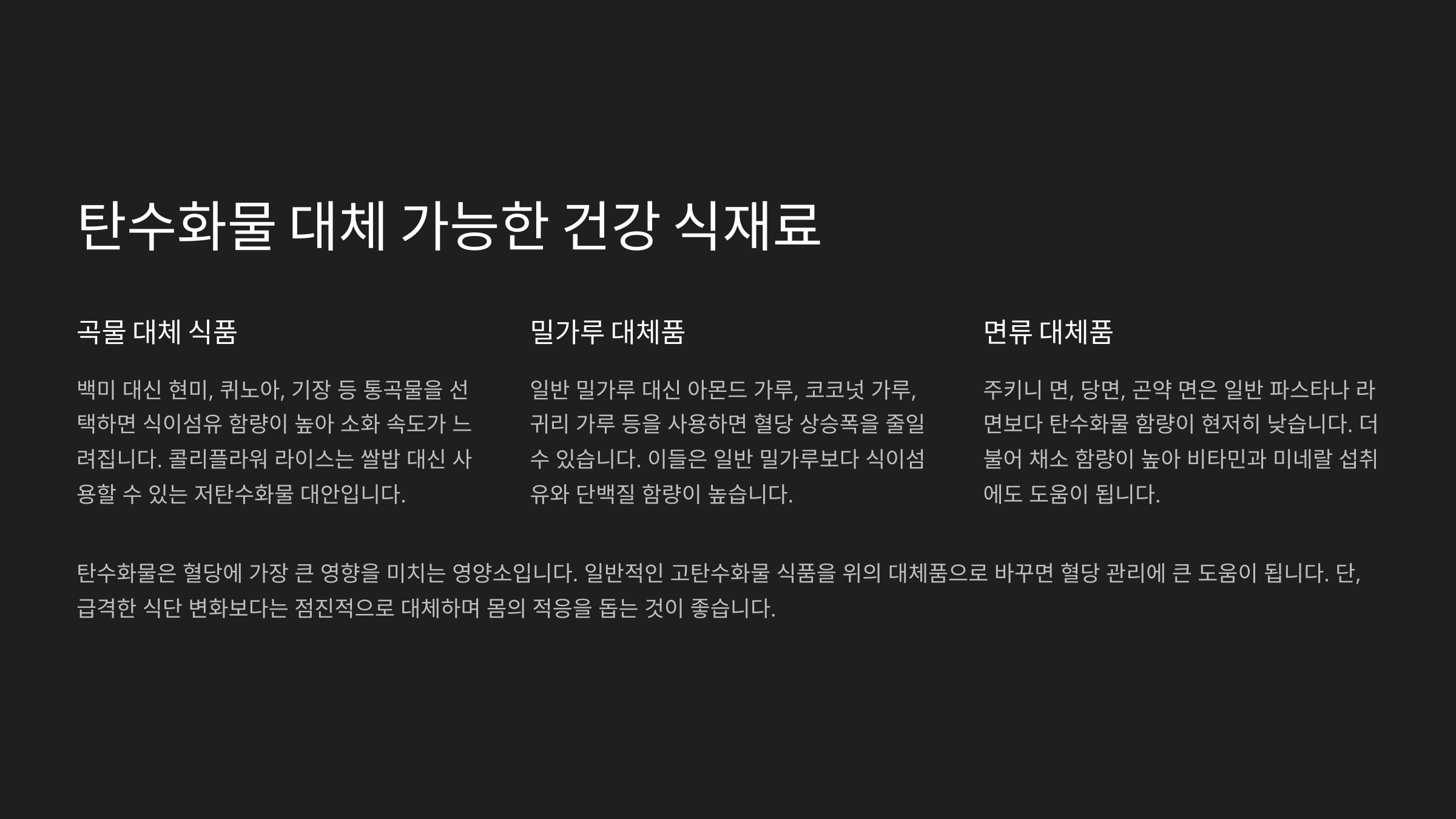 맛도 챙기고 혈당도 챙길 수 있는 재료는 생각보다 많아요. 이제는 '줄이는 식단'이 아니라, '바꾸는 식단'이 진짜 전략이에요. 🍽️